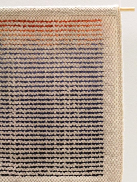The colour transitions symbolize the mutability of memory. Each rya knot is influenced by its neighbour, carrying traces of the memory’s origin. The two sides of the weave stand in contrast – light and darkness, past and present.